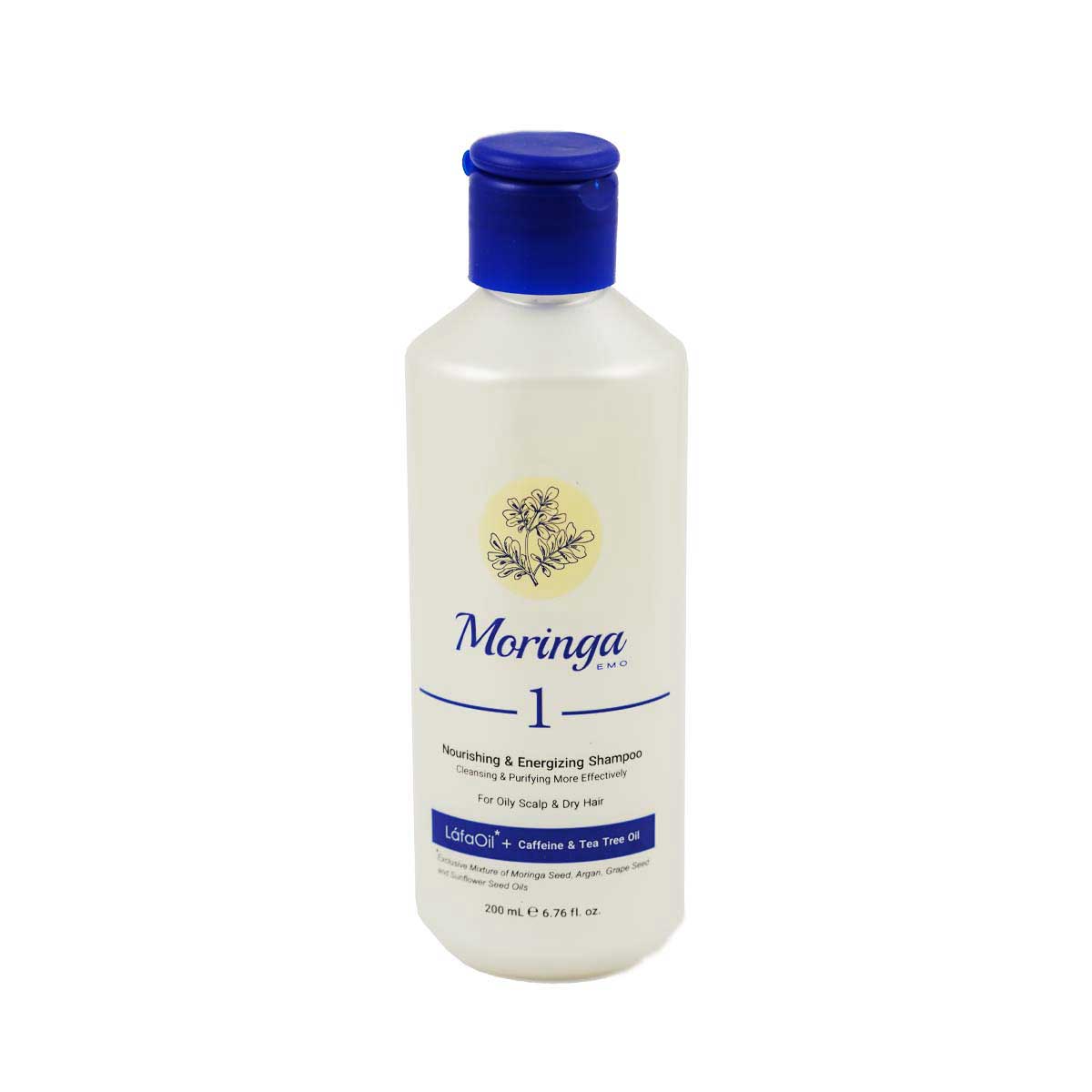 تنظیم چربی پوست سر و تأمین رطوبت تارهای مو لافااُیل + کافئین و روغن درخت چای شامپو مغذی و انرژیبخش مورینگا اِمو 1 حاوی روغنهای گیاهی و کافئین است که ضمن کنترل چربی اضافه و پاکسازی منافذ پوست سر، فولیکولهای مو را نیز تقویت میکند. همچنین به علت وجود ترکیبات آبرسان در این محصول، رطوبت مورد نیاز تارهای مو تامین شده و از ایجاد موخوره و شکنندگی آنها جلوگیری میشود. • پاکسازی موثر منافذ و کنترل چربی پوست سر • تامین مواد مغذی و رطوبترسانی مؤثر تارهای مو • پیشگیری از شکنندگی تارهای مو و ایجاد موخوره • کمک به حفظ چرخه طبیعی رشد موها و جلوگیری از ریزش آنها • جلوگیری از آسیبهای ناشی از نور خورشید و ضد آلودگیهای محیطی