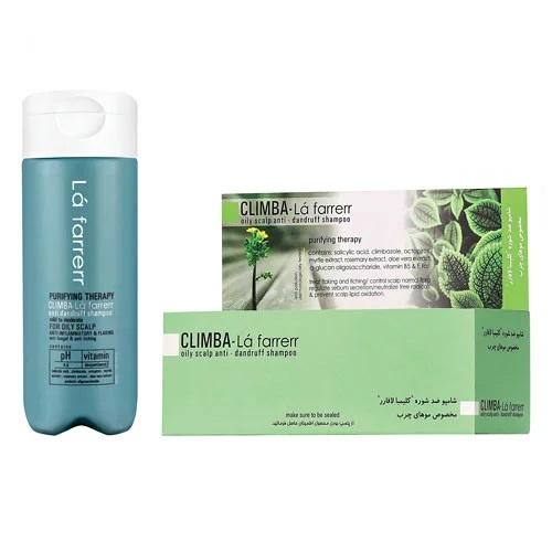 شامپو ضد شوره کلیمبا مخصوص موهای چرب و کدر شامپو ضد شوره کلیمبا مخصوص موهای چرب و کدر لافارر حاوی سالیسیک اسید، کلیمبازول، پیروکتون اولامین، بیولین، عصاره رزماری، عصاره آلوئه‌ورا، عصاره مورد،Zn- PCA و ویتامین B5 وE است. این شامپو ضد شورهکه ضمن کنترل و رفع شوره‌های چرب، عوامل میکروبی و قارچی مولد شوره سر را از بین می‌برد و به حفظ میکروارگانیسم های مفید پوست سر کمک می‌کند. عصاره های گیاهی و ترکیبات به کار رفته در شامپو ضد شوره کلیمبا مخصوص موهای چرب و کدر لافارر، باعث تنظیم ترشح چربی، رفع خارش و قرمزی، تسکین التهاب و رفع بوی بد ناشی از اسیدهای چرب پوست سر می‌شود. ---- شامپو ضد شوره کلیمبا مخصوص موهای چرب و کدر لافارر مزایای این محصول بشرح ذیل می باشد : کنترل و رفع شوره‌های سر افزایش گردش خون موضعی و کمک به تغذیه بهتر فولیکول‌های مو ازبین برنده عوامل میکروبی و قارچی مولد شوره دارای عامل کراتولیتیک تنظیم میزان فعالیت غدد سباسه و ترشح چربی پوست سر رفع بوی بد ناشی از اسیدهای چرب پوست سر حفظ فلور نرمال و کمک به حفظ سلامت پوست سر شماره پروانه بهداشتی ساخت : 7651/ظ/56 ----- شامپو ضد شوره کلیمبا مخصوص موهای خشک شامپو ضد شوره کلیمبا مخصوص موهای خشک لافارر حاوی سالیسیک اسید، کلیمبازول، پیروکتون اولامین، بیولین، عصاره بید سفید، عصاره آلوئه‌ورا، ویتامین B5 و E و Na-PCA است، که ضمن کنترل و رفع شوره‌های خشک، عوامل میکروبی و قارچی مولد شوره را از بین می‌برد و به حفظ میکروارگانیسم‌های مفید پوست سر کمک می‌کند. عصاره‌های گیاهی و ترکیبات به کار رفته در شامپو ضد شوره کلیمبا مخصوص موهای خشک لافارر، باعث تنظیم ترشح چربی، رفع خارش و قرمزی، تسکین التهاب و رفع بوی بد ناشی از اسیدهای چرب پوست سر می‌شود. --- شامپو ضد شوره کلیمبا مخصوص موهای خشک لافارر مزایای این محصول بشرح ذیل می باشد : کنترل و رفع شورۀ سر ازبین برنده عوامل میکروبی و قارچی مولد شوره دارای عامل کراتولیتیک رطوبت‌رسانی عمقی به تارهای مو رفع خشکی پوست سر حفظ فلور نرمال و کمک به حفظ سلامت پوست سر شماره پروانه بهداشتی ساخت : 7650/ظ/56