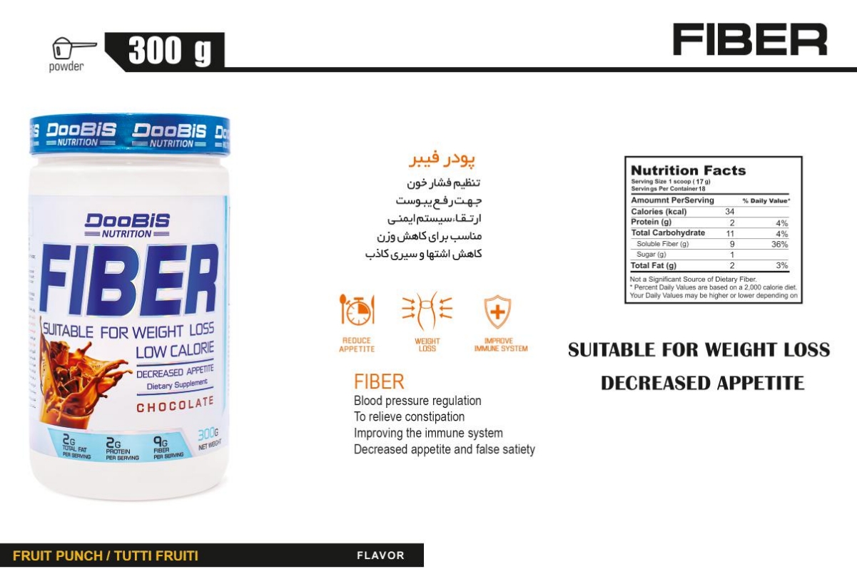 پودر فیبر برند دوبیس موجب حس سیری برای مدت زمان طولانی شده و در نهایت موجب کاهش وزن می‌شود، این مکمل باعث کاهش کلسترول، پایداری سطح قند خون، و سلامت گوارش هم خواهد بود.