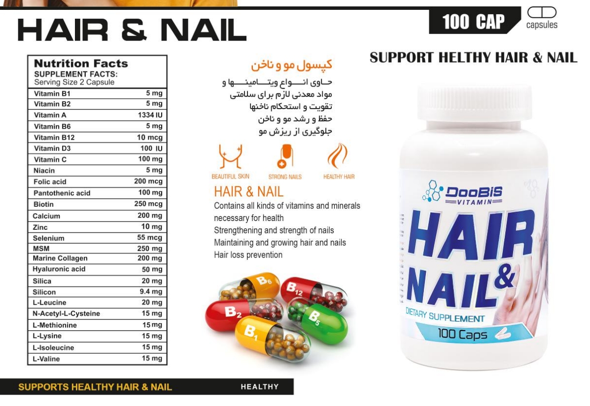 کپسول مو و ناخن برند دوبیس حاوی ترکیبات ارزشمندی است که موجب زیبایی و سلامت مو و ناخن شما میشود. علاوه بر آن مصرف این محصول به تقویت سیستم ایمنی کمک موثری میکند.