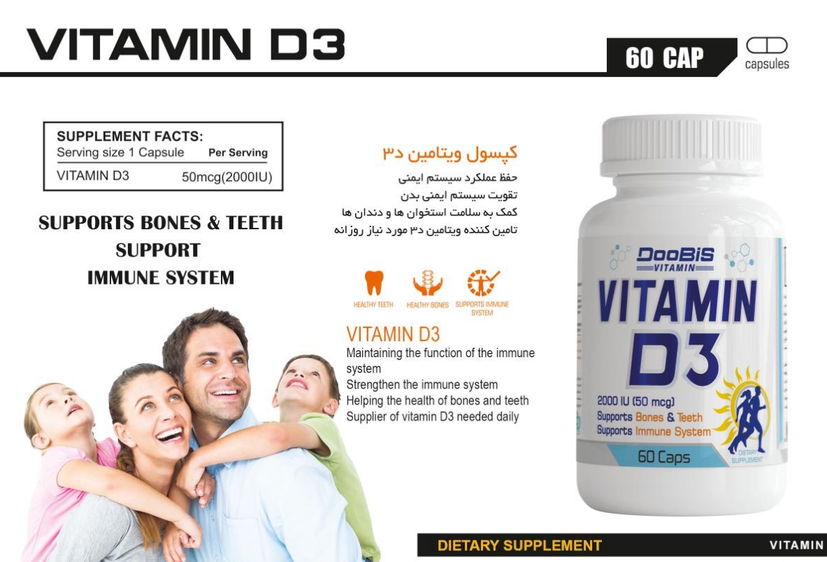 کپسول ویتامین D۳ دوبیس نیاز روزانه بدن به ویتامین دی را تامین کرده و به تقویت سیستم ایمنی بدن میپردازد. افزایش سطح سلامت دندانها و استخوانها دیگر فواید مصرف این محصول است.